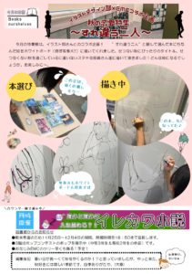 今月の特集棚は、イラスト部さんとのコラボ企画! ”すれ違う二人”と題して選んだ本にちなんだ絵をホワイトボード(ほぼ等身大!!)に描いてくれました。せつない秋にぴったりのタイトル。