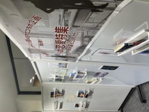 今月の特集棚は、イラスト部さんとのコラボ企画! ”すれ違う二人”と題して選んだ本にちなんだ絵をホワイトボード(ほぼ等身大!!)に描いてくれました。せつない秋にぴったりのタイトル。