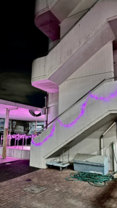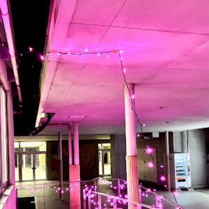 校内には生徒会執行部が準備したイルミネーションが施され,ピンクシャツ運動のアピールに一役買っていました。