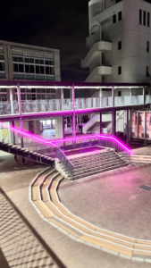 校内には生徒会執行部が準備したイルミネーションが施され,ピンクシャツ運動のアピールに一役買っていました。