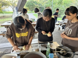 入所式の後、夕飯に向けて、カレー作りを行いました。