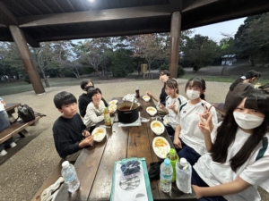 なかなか火が付かず、苦戦している班もありましたが、班で協力をして、カレーを作り上げました。