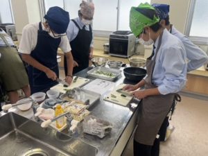 各班に分かれ、戸惑う生徒も友達と連携しながら調理を行いました。
