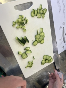 調理実習を行い、「肉うどん」と「きゅうりの酢の物」をつくりました。