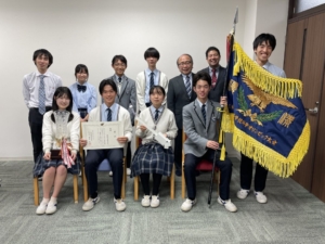 今日は優勝旗やトロフィーを携えて、校長先生へ優勝の報告に訪れました。