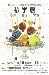 現在、津市の三重県立美術館にて「第45回三重県私立中高等学校私学展」が開催されています。