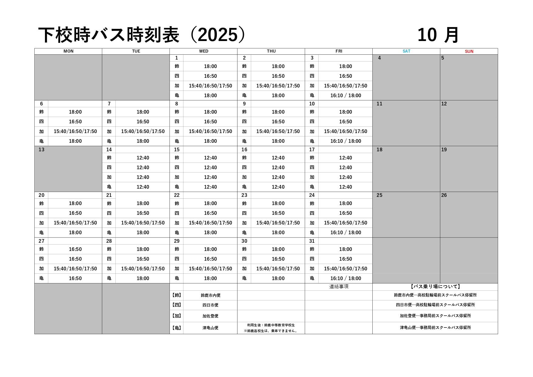 スクールバス運行予定表を掲載します。